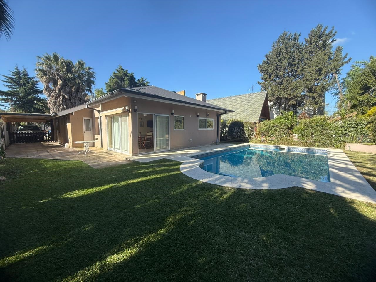 Excelente propiedad desarrollada en una planta sobre lote de 524 m², con una superficie cubierta de 205 m², ubicada dentro del exclusivo barrio Náutico de Escobar. La casa cuenta con: amplio living-comedor con muy buena luminosidad, cocina comedor diario con parrilla integrada, 2 dormitorios, uno de ellos con vestidor, baño completo + toilette con ducha y salida directa al jardín, lavadero independiente y escritorio o posible tercer dormitorio. Ideal para quien busca un rodearse de un entorno natural y provisto de la seguridad que ofrece este barrio cerrado.