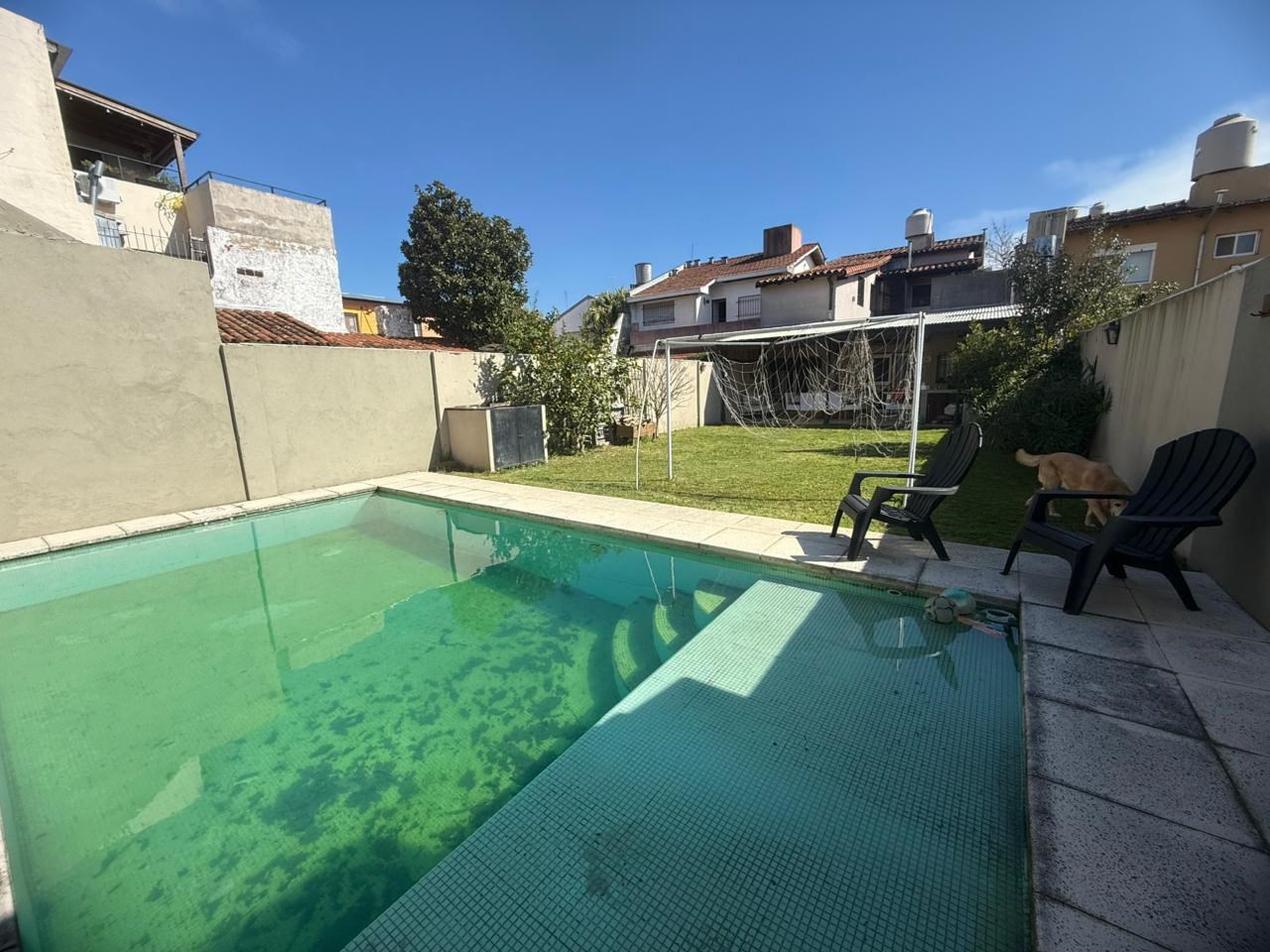 Sólida y funcional casa en excelente ubicación. Hall de entrada, amplio living y comedor actualmente adaptados como dos dormitorios, toilette de recepción, dormitorio en planta baja con baño completo reciclado. Cómoda cocina y un comedor diario con salida a una amplia galería con parrilla. Hermoso jardín con piscina. Garage y lavadero. Entorno residencial y tranquilo, a pasos de todo. Planta alta: 3/4 dormitorios, otro baño completo y salida a terraza soleada.
