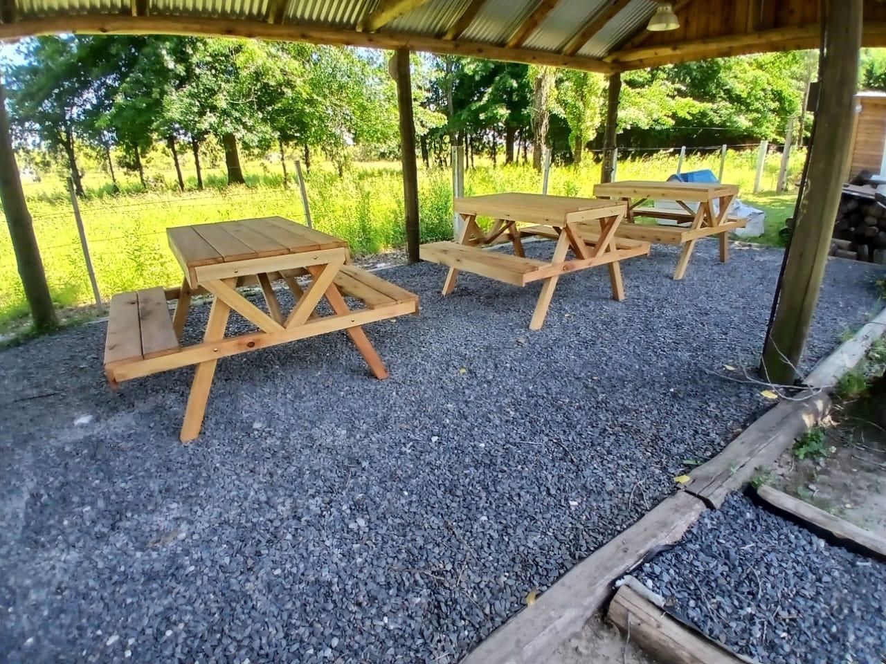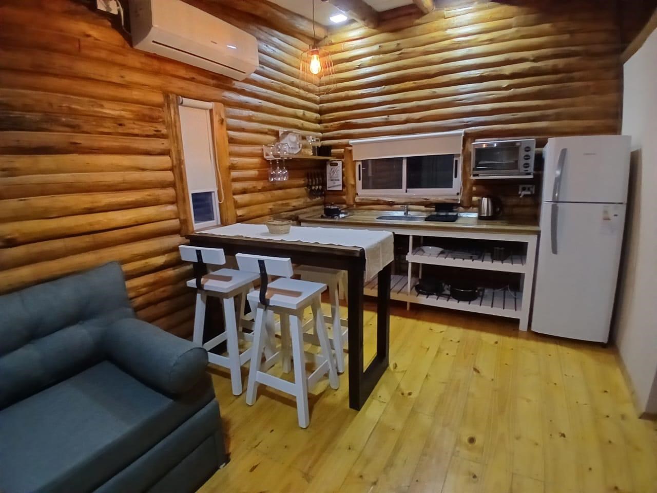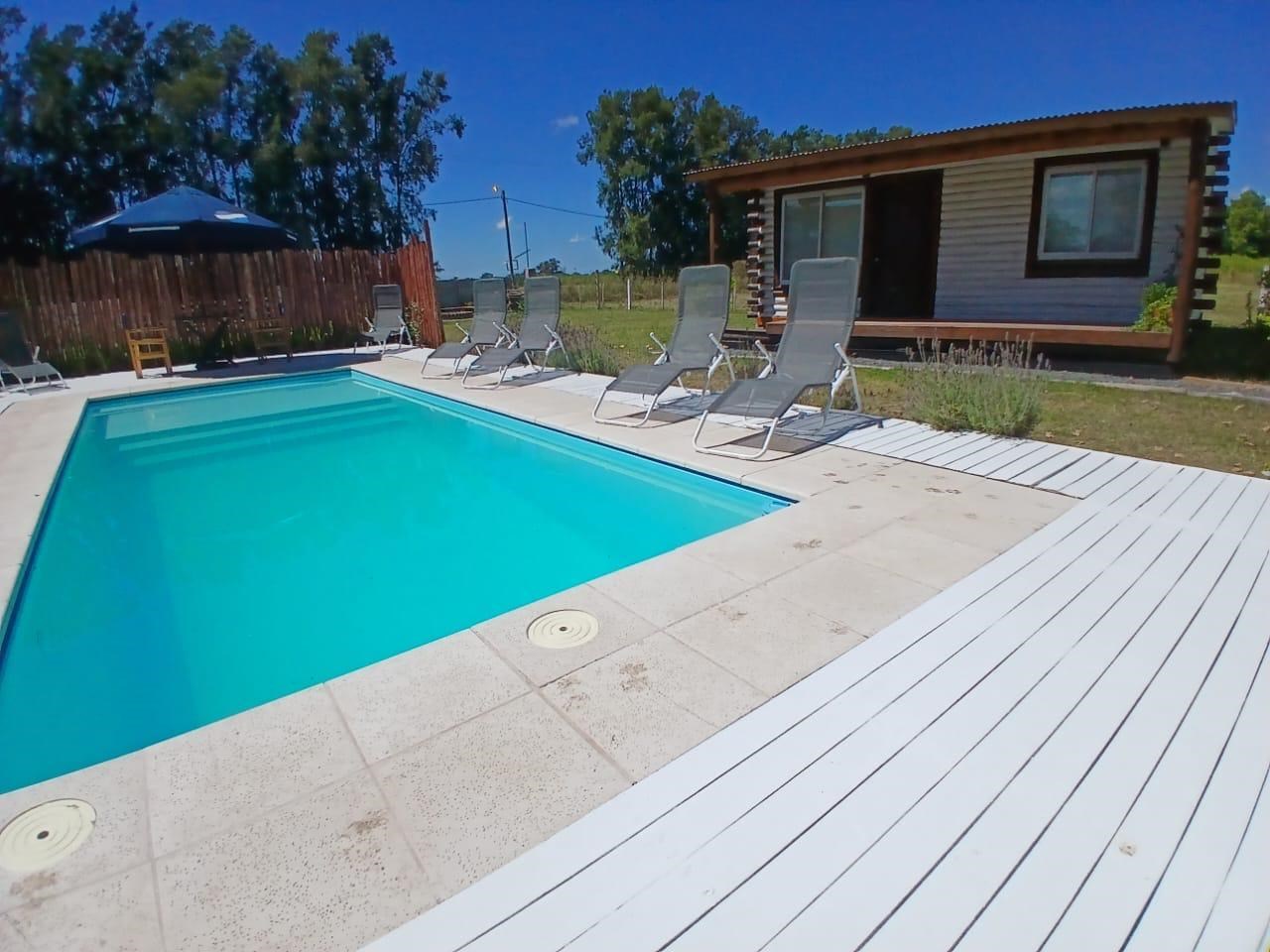 Hermosa cabaña en San Pedro con capacidad para dos a cuatro personas. Está equipada con una TV de 43 pulgadas, aire acondicionado frío-calor, cocina con vajilla completa, heladera con freezer, horno eléctrico, pava eléctrica, ropa de cama y toallas. La cabaña está rodeada de un extenso jardín que incluye piscina y quincho con parrillas.