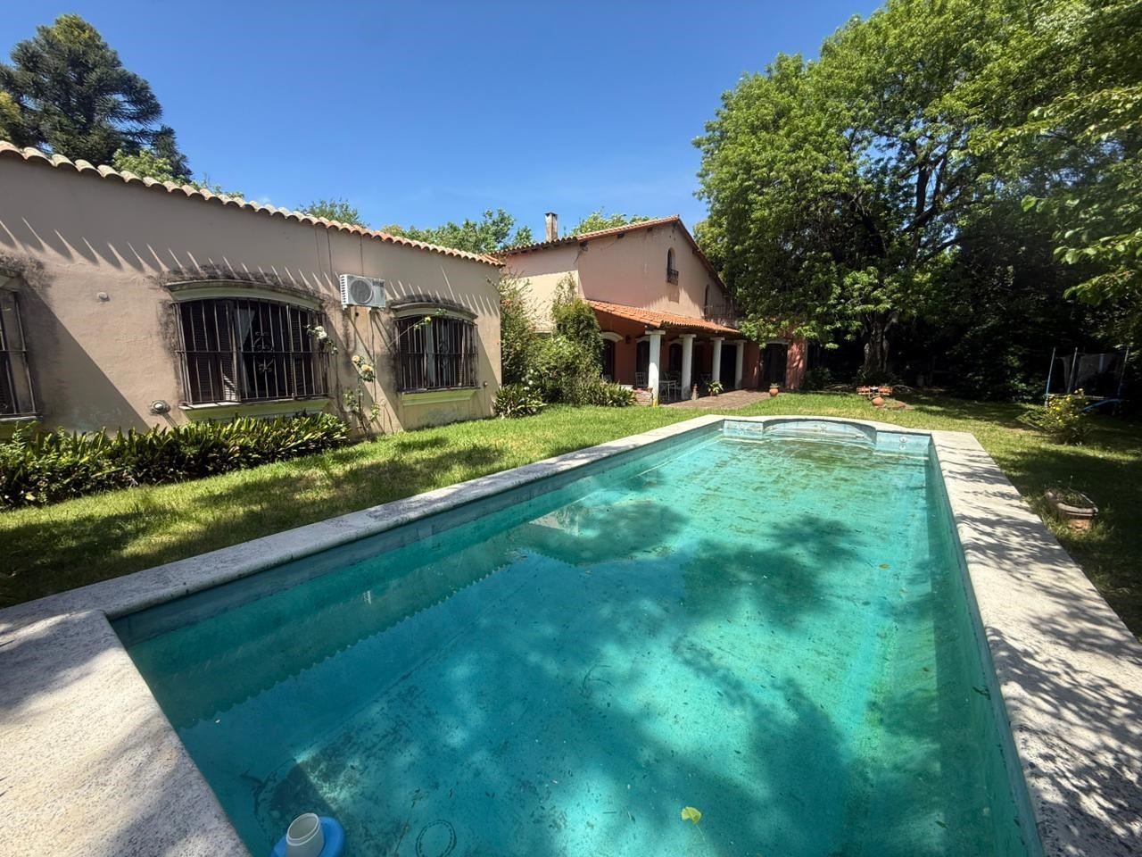 Excelente propiedad a refaccionar con gran potencial y ubicación estratégica. Al ingresar, nos recibe un hall de entrada que da paso a un amplio living-comedor con salida a galería. La casa cuenta con: cocina, comedor diario, dependencia de servicio con baño de servicio, 5 amplios dormitorios (uno de ellos en suite) y un baño completo adicional. En el exterior, se destaca un hermoso jardín arbolado con piscina, parrilla y quincho, ideal para disfrutar al aire libre. Tiene cochera con capacidad para varios autos. Una propiedad construída con bases sólidas. Tiene muchísimo potencial, es ideal para refaccionar: cuenta con la posibilidad de ampliar hacia la planta alta, donde se ubica un escritorio con salida a una terraza con muy buena vista. Representa una gran oportunidad por su superficie y ubicación privilegiada con excelente acceso a Panamericana.